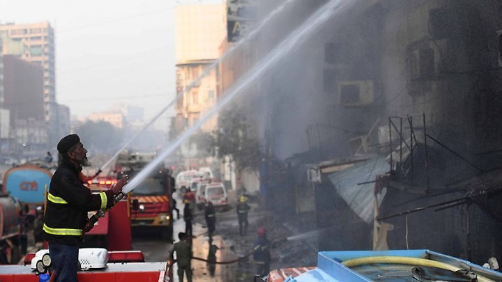Η πυρκαγιά ξέσπασε αργά το βράδυ του Σαββάτου στο πολυώροφο εμπορικό κέντρο Gul Plaza στην επιχειρηματική συνοικία της πόλης και έκαιγε για περισσότερο από 24 ώρες, εμποδίζοντας τις προσπάθειες διάσωσης στην πυκνοκατοικημένη περιοχή.
